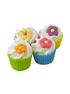 Il existe 4 couleurs différentes de Fleur sur le mini cupcake (jaune, orange, mauve ou rose).